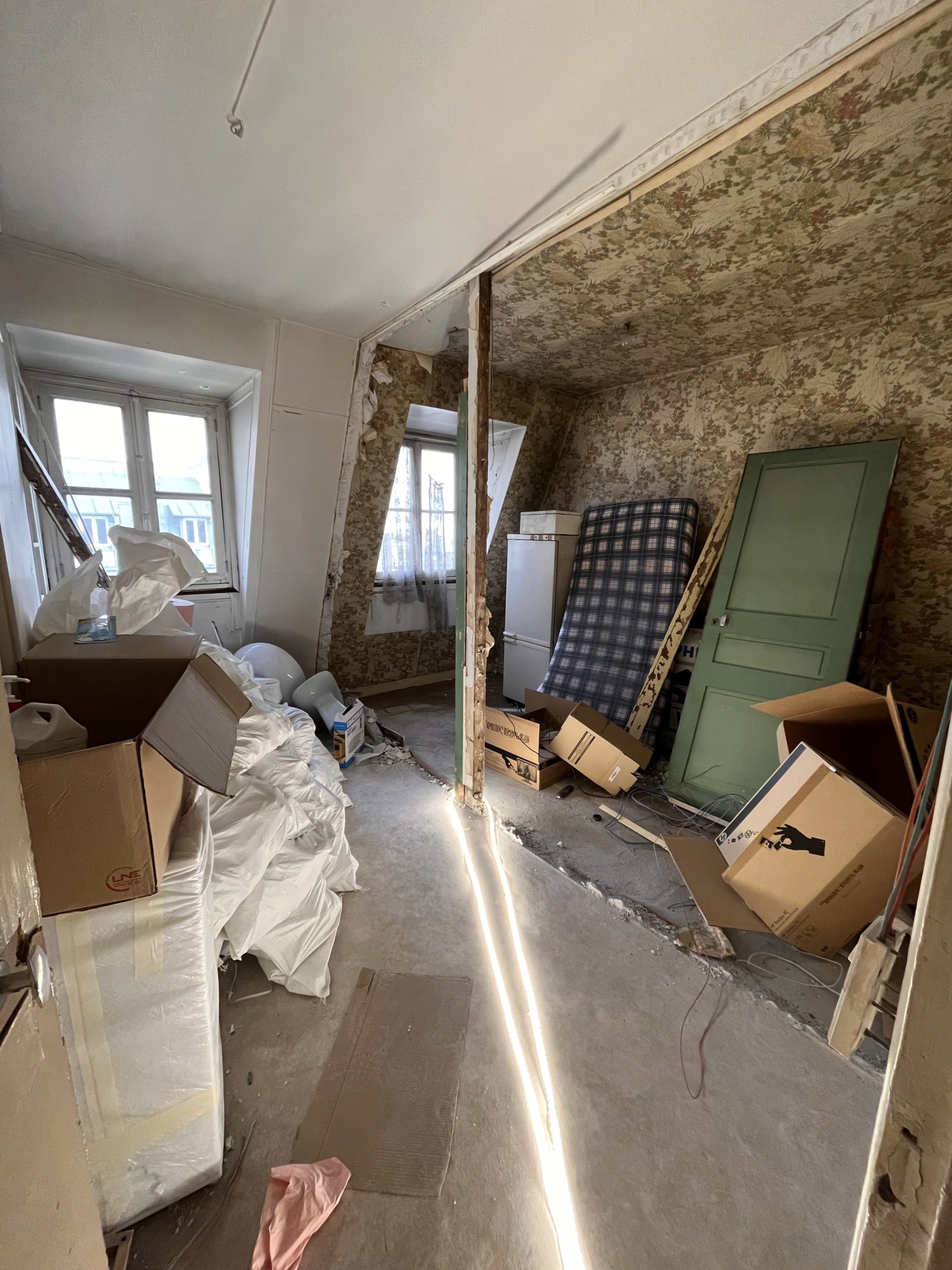 Nous avons transformé un ensemble de chambres de service situées au dernier étage d’un immeuble parisien en un appartement chaleureux et optimisé.